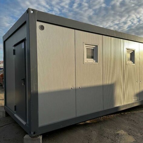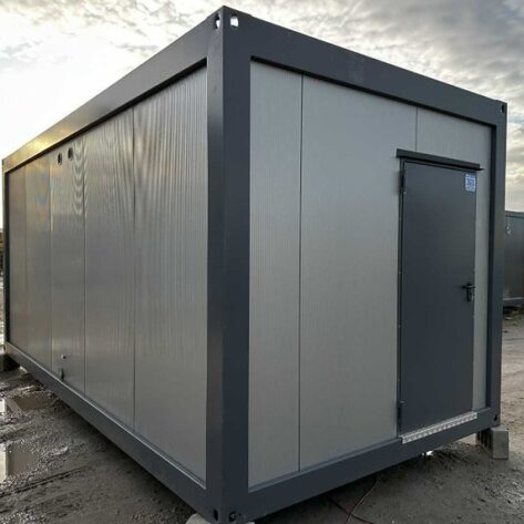 Conteneur sanitaire 6,06 × 2,44 m – 2 douches, 2 WC, 2 urinoirs, 5 lavabos