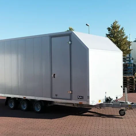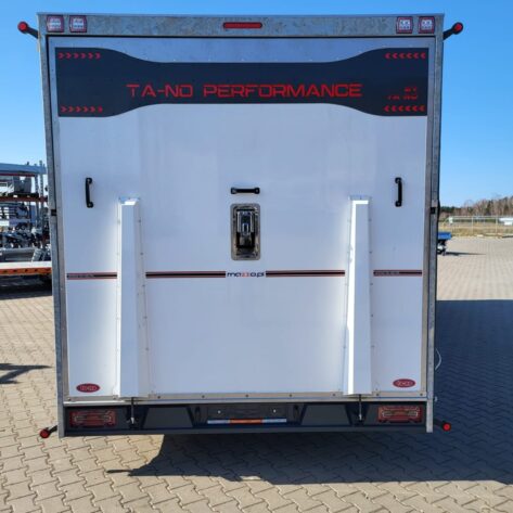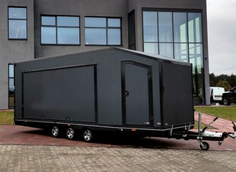Transporteur sportif 700 x 230 x 220 cm avec rideaux coulissants sur 2 côtés, poids total autorisé en charge jusqu’à 3500 kg, transporteur universel