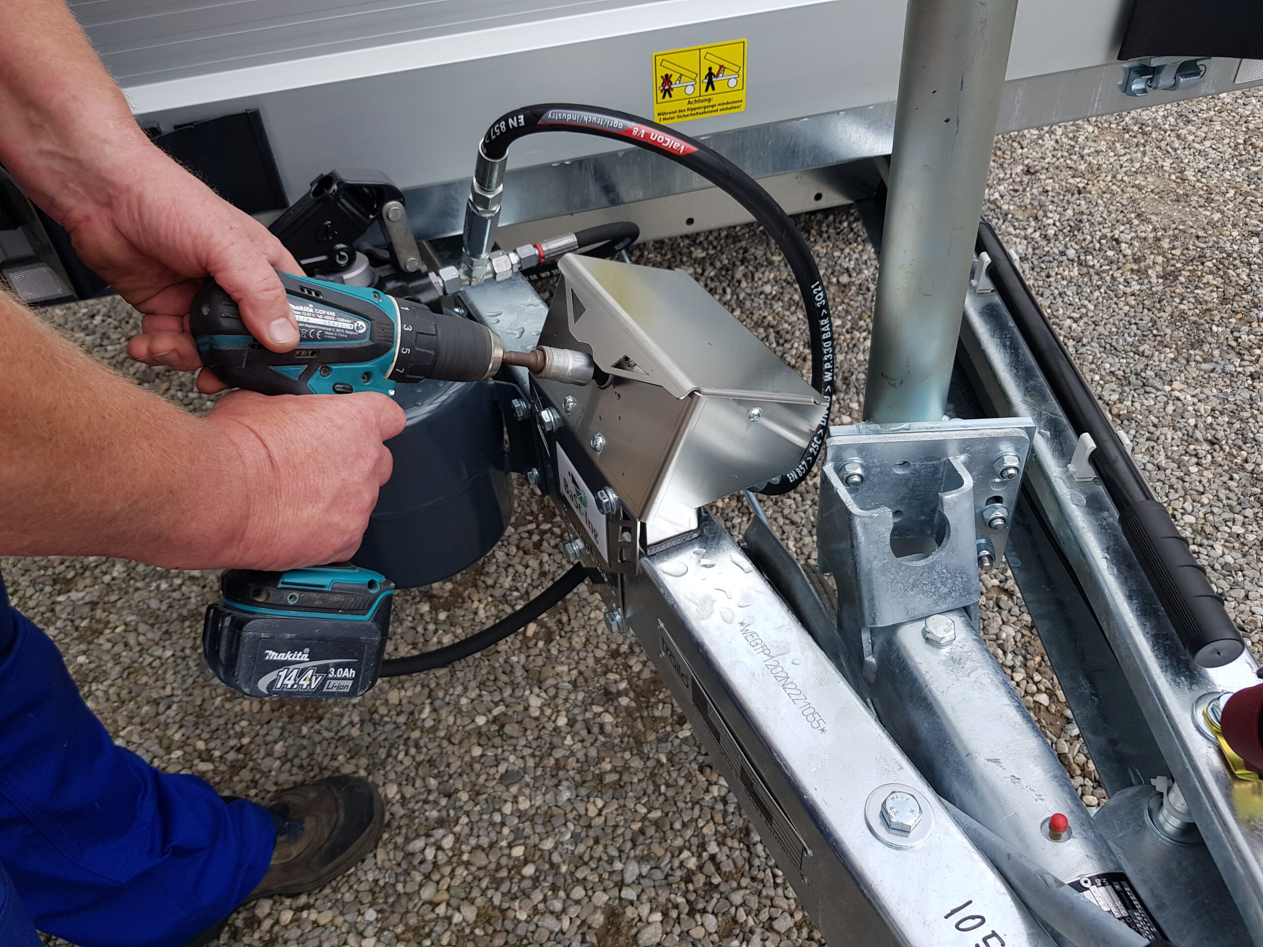 Benne arrière RWK2515-27H, 2700 kg, 2,5 x 1,47 m, avec système hydraulique de perceuse sans fil
