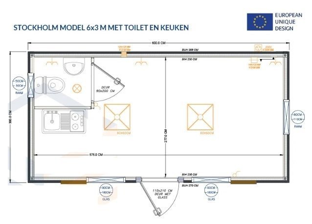 Conteneur Maison Bureau 6×3 mètres modèle Stockholm avec sanitaires et cuisine