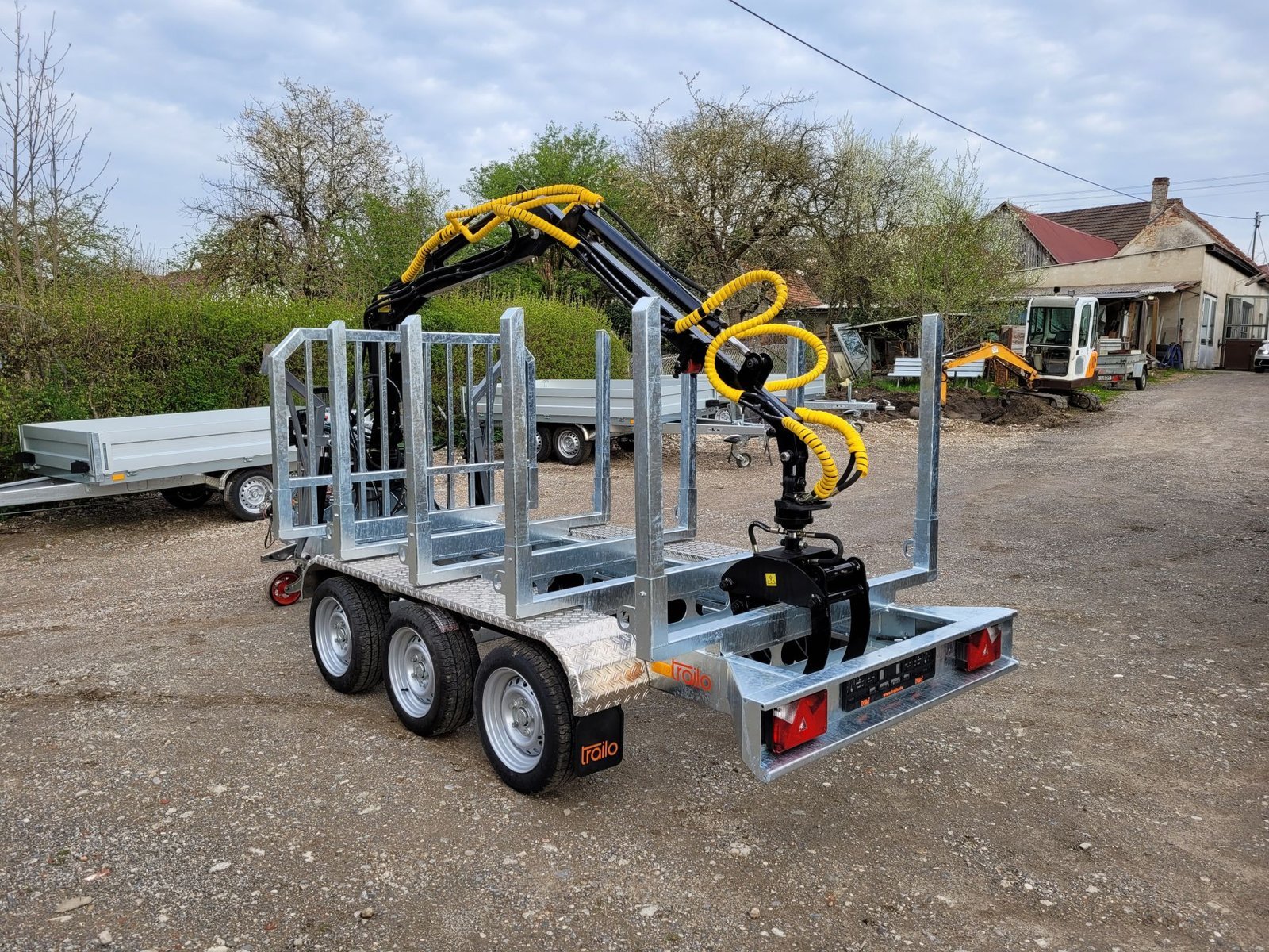 La grue de chargement du bois facilite le chargement des grumes. Grâce au groupe hydraulique intégré avec moteur à essence, le véhicule peut être utilisé partout. Vous recevrez bien entendu le véhicule entièrement monté avec tous les fluides de fonctionnement mais sans carburant.
