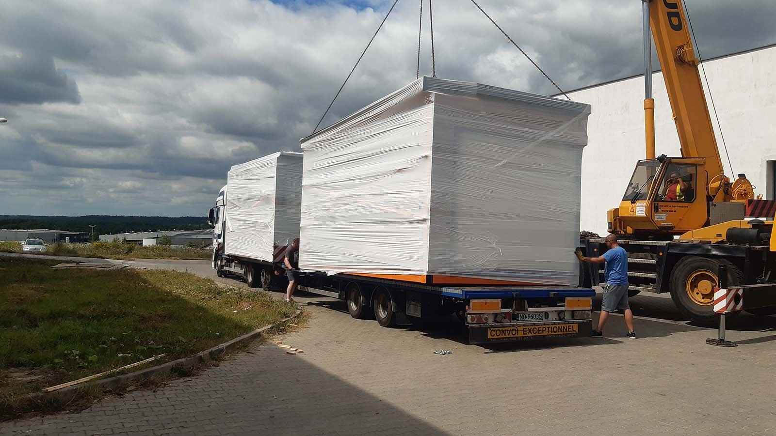 La maison est construite sur notre site de production, passant par toutes les étapes de production jusqu’à ce qu’elle soit terminée. Une fois terminée sur le site de production, elle est transportée vers sa destination finale.